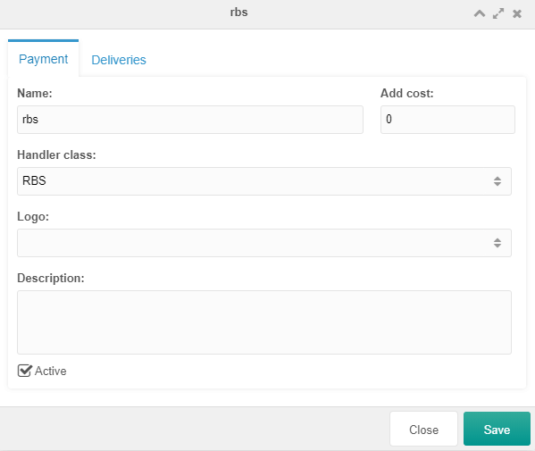RBSin Handler class. Make sure to check the Active checkbox to enable the payment method.