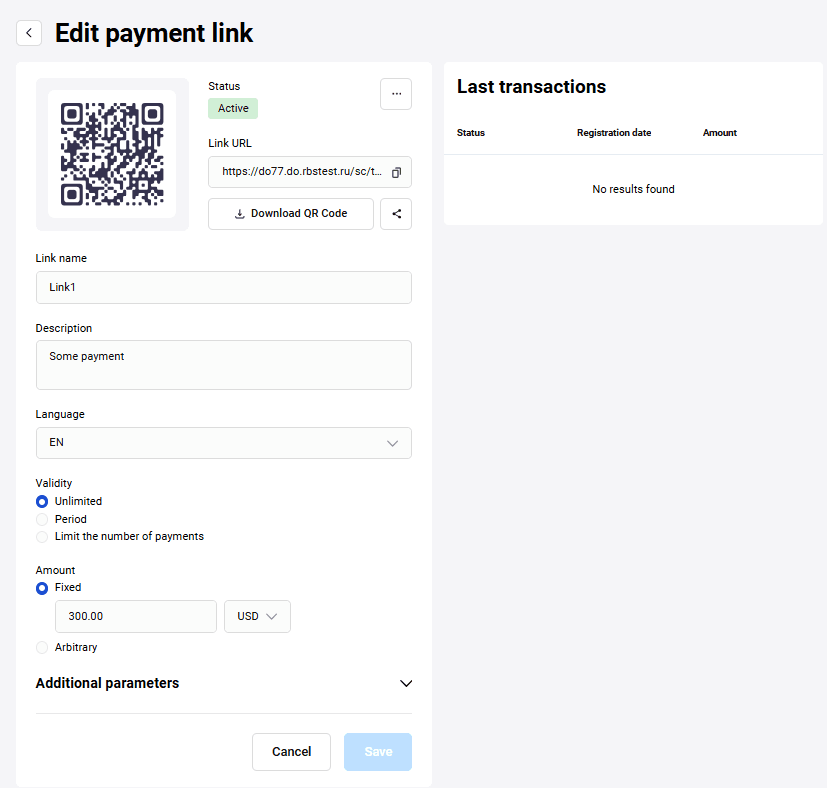 | Session duration (in minutes) | The period given for entering the card data from the moment the payment is registered. If payment is not made within the specified period, the order will go to DECLINED status. After that Callback will be sent, if configured. Changing the status of such orders is performed according to the schedule, so slight delays are possible. If you request status on such an order and time has passed on it, the order will immediately be moved to DECLINED status |