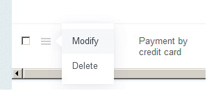 The created payment method will be displayed in the table on the Payment systems page. If you need to change the payment plugin settings click the menu icon next to your payment method and select Modify (see the figure below).