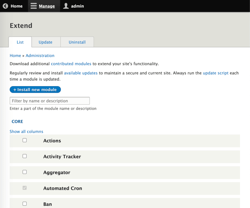- On the page that opens, click on the Upload a module button at the top right-hand corner.