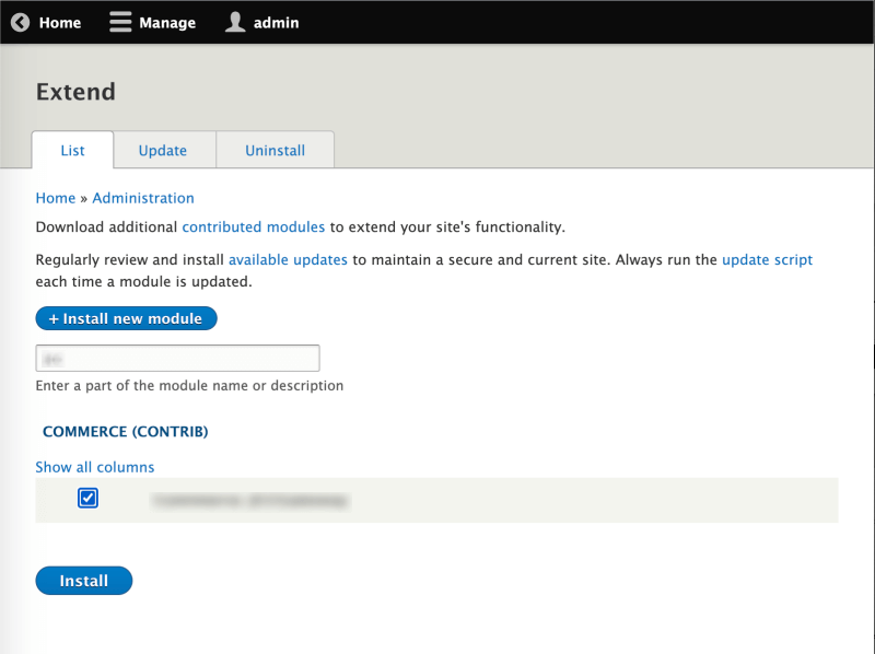 - Сайтыңызға әкімші ретінде кіріп, Модульдер > Модульдерді басқару таңдаңыз. Келесі бет көрсетіледі.