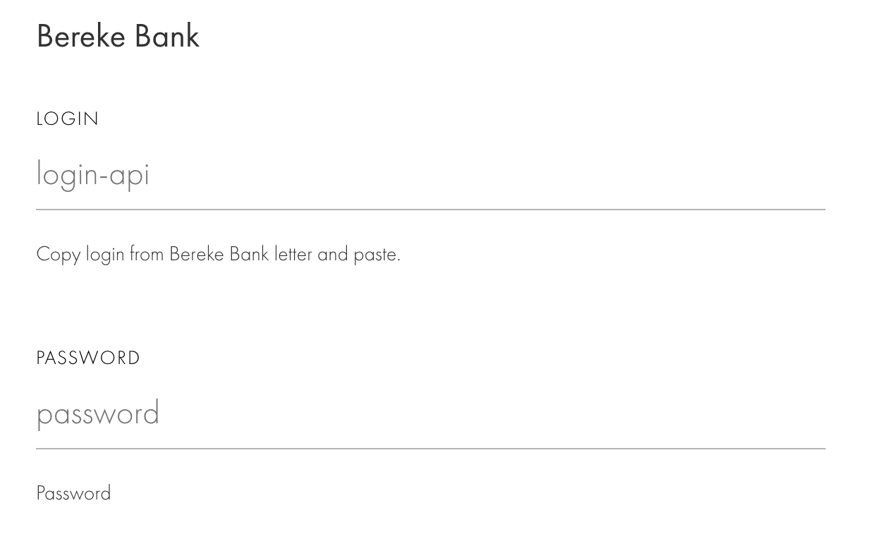 | Password | API password provided by your bank. |