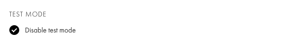 Test mode – intended for debugging. In this mode, only test payments are made without actual debiting of funds. To enable test mode, you need to uncheck the "Disable test mode" checkbox in the Test mode section at the bottom of the page.