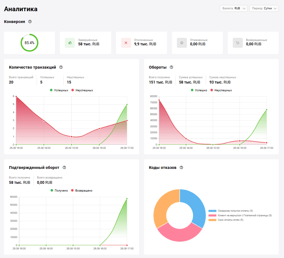 Из личного кабинета можно выполнить возврат средств по произведенным транзакциям (оплаченным клиентами заказам, которые находятся в статусе Завершен). Для двухстадийных платежей статус Завершен означает, что средства, находящиеся на карте плательщика, уже списаны.